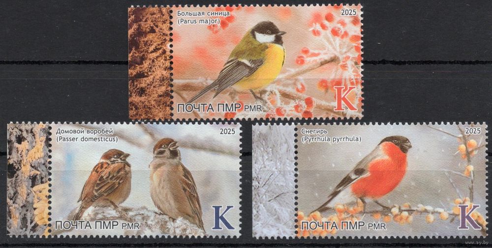 ПМР Приднестровье 2025. Фауна. Птицы. Снегирь. Синица. Воробей. 3 Марки (1008)