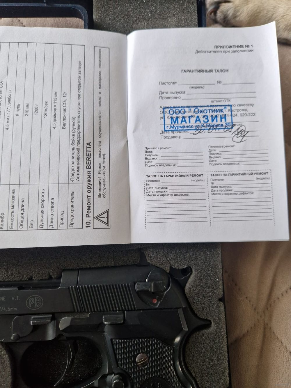 Пневматический пистолет Umarex Beretta M92 FS черный с черными накладками 4,5 мм. Производство Германия.