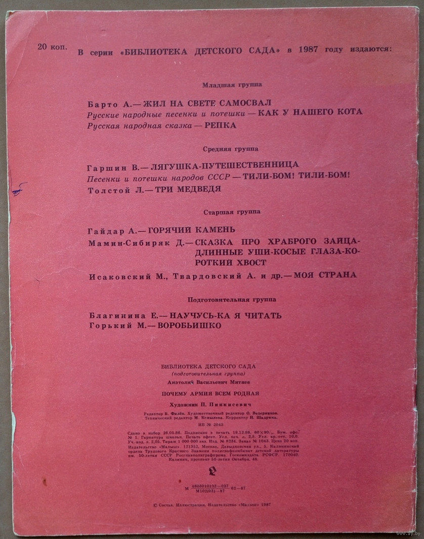 Почему армия всем родная. Анатолий Митяев. Изд. "Малыш". 1987г. Худ. П. Пинкисевич.