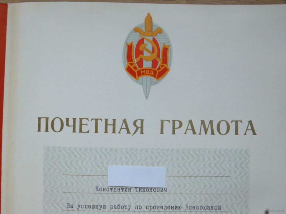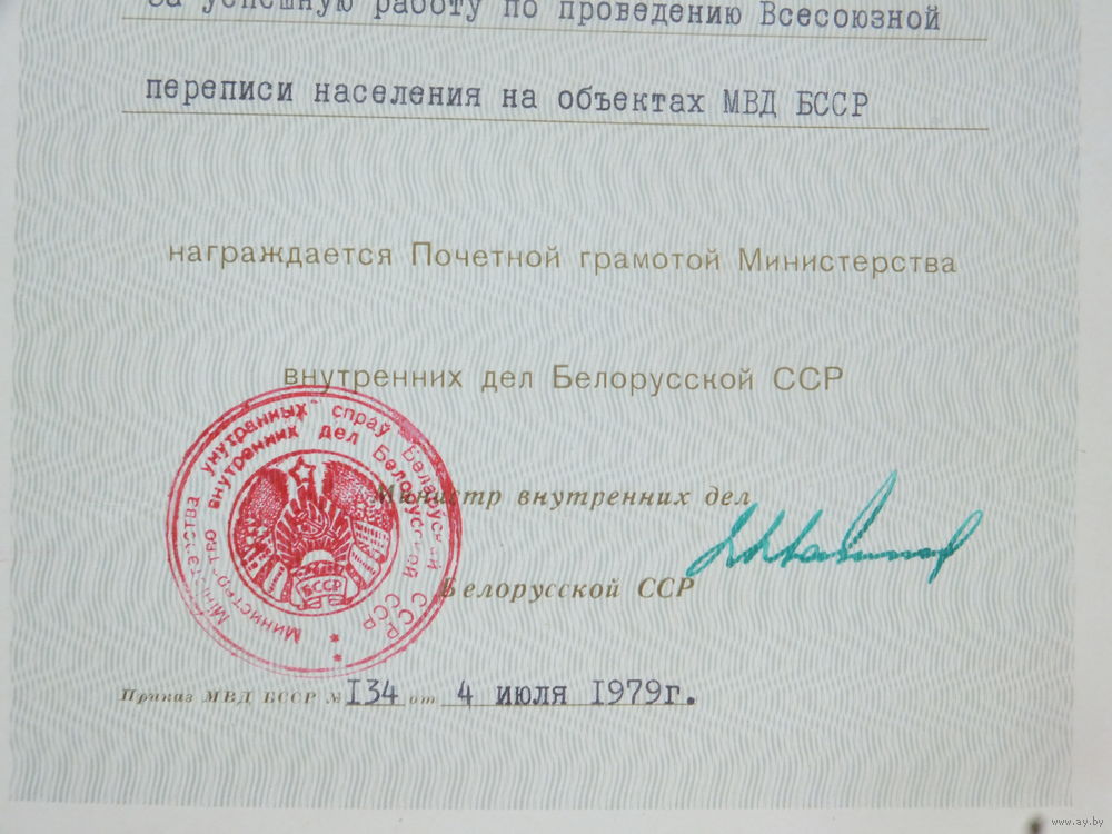 Почетная грамота МВД БССР 1979