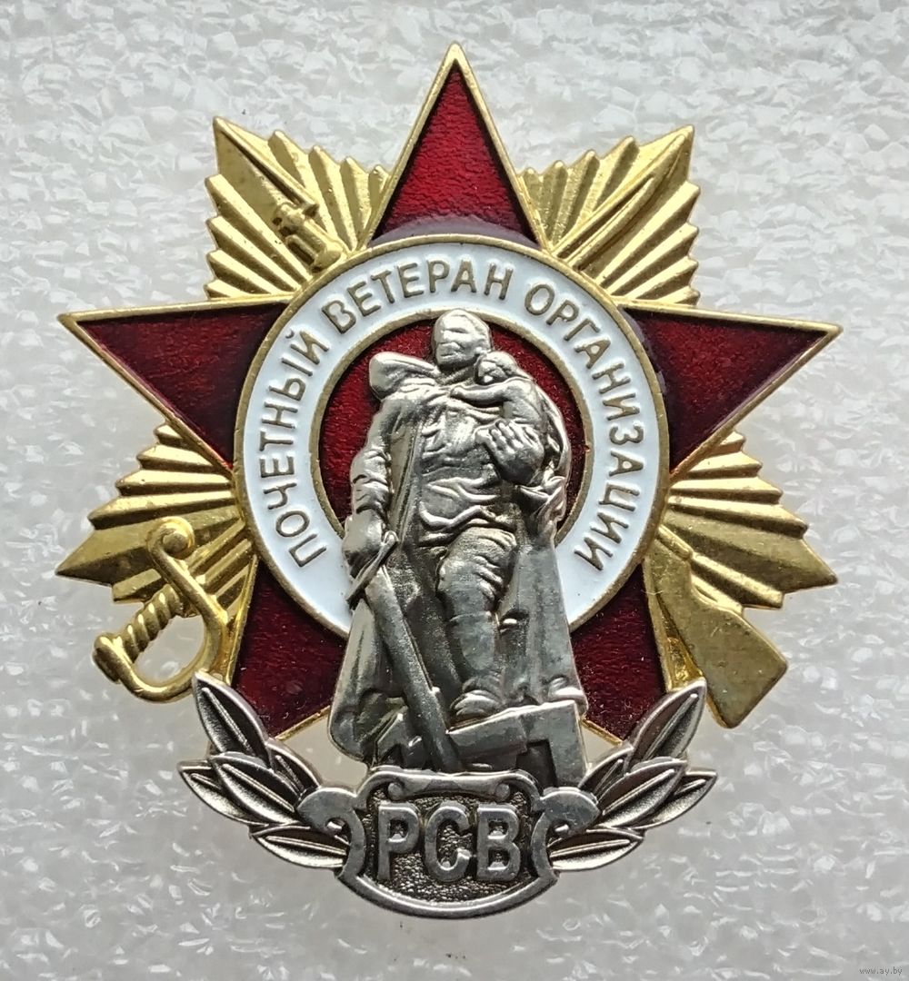 Почетный ветеран организации РСВ. Тяжелый металл, накладной, на винте. Редкий знак.