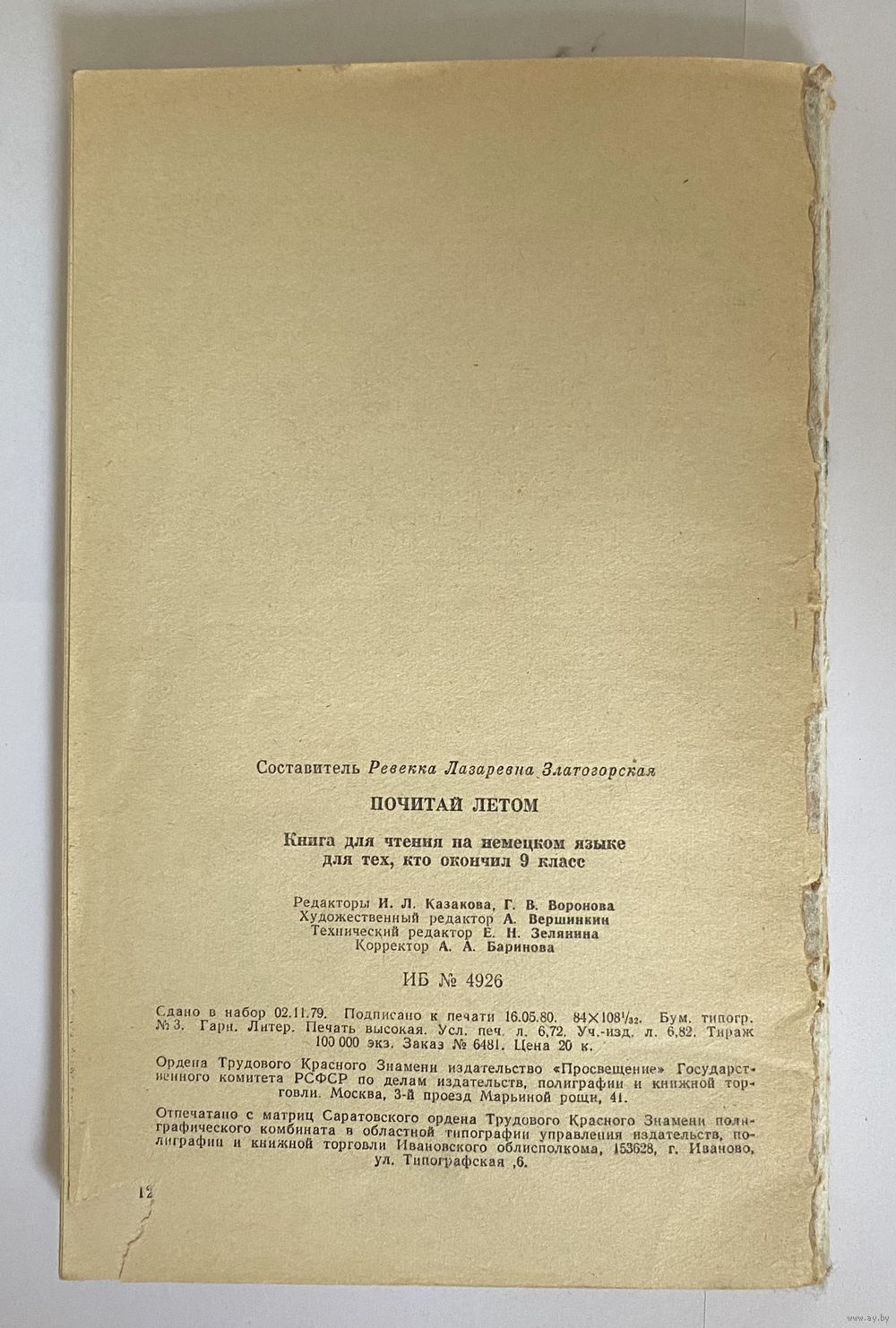 "Почитай летом". Книга для чтения на немецком языке для тех кто окончил 9 класс /Сост. и обраб. Р. Л. Златогорская. - М.: