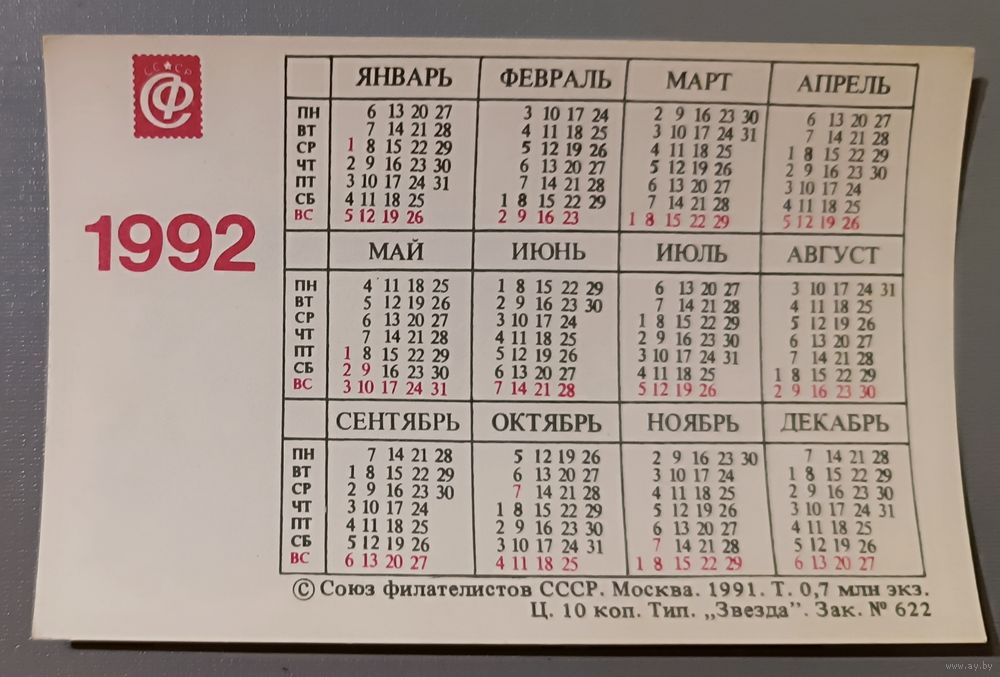 Почта России 19 век. Почтовая карета. Календарик, 1992