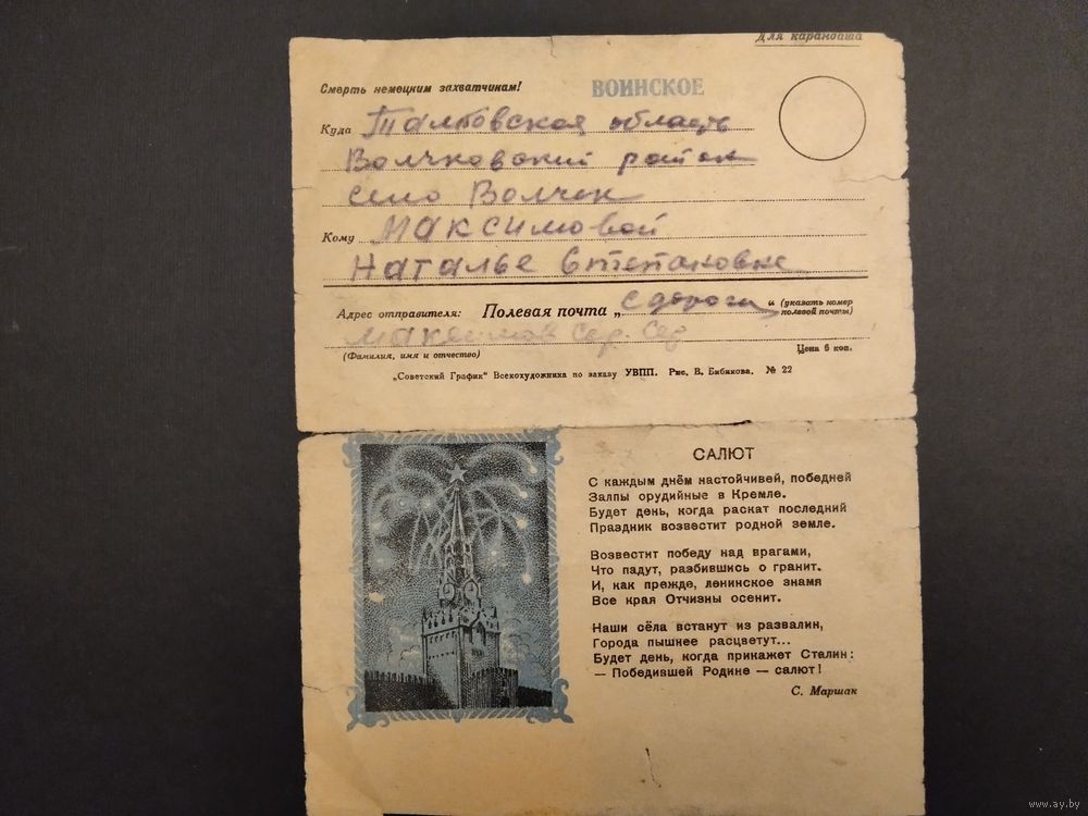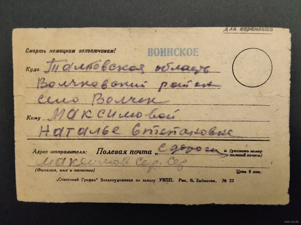 Почтовая карточка 1944г. Открытое письмо с фронта. 06.01.1944г.