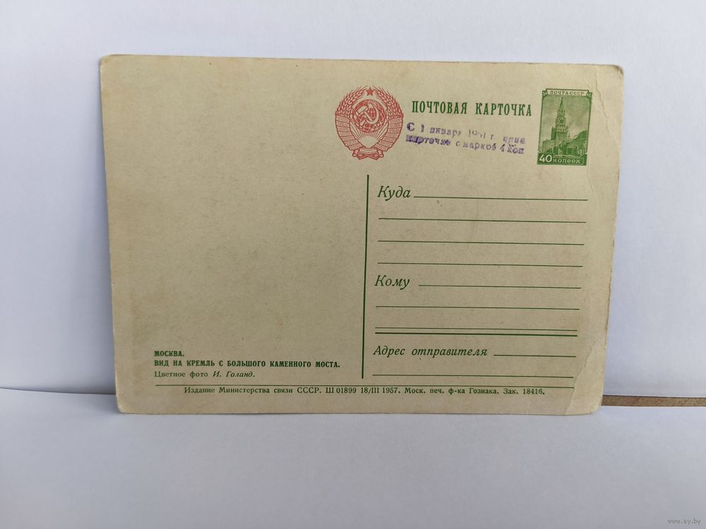 Почтовая карточка, 1957г. Москва. Вид на Кремль с большого каменного моста. +Открытки, 1982г. Москва. 14