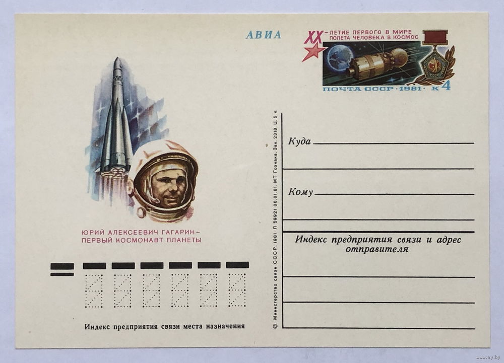 Почтовая карточка 20 - летие первого в мире полета человека в космос