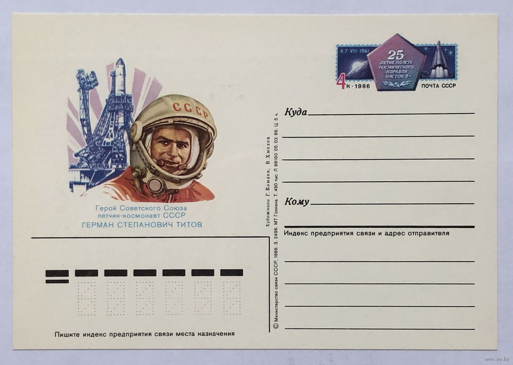 Почтовая карточка 25 - летие полета космического корабля Восток-2