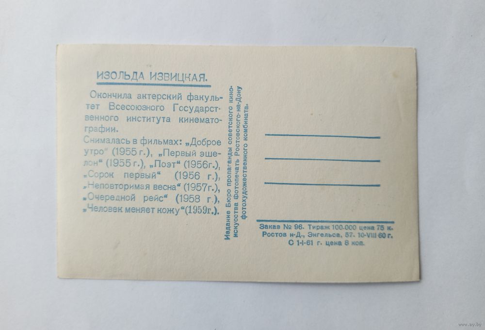 Почтовая карточка Изольда Извицкая 1960 год.