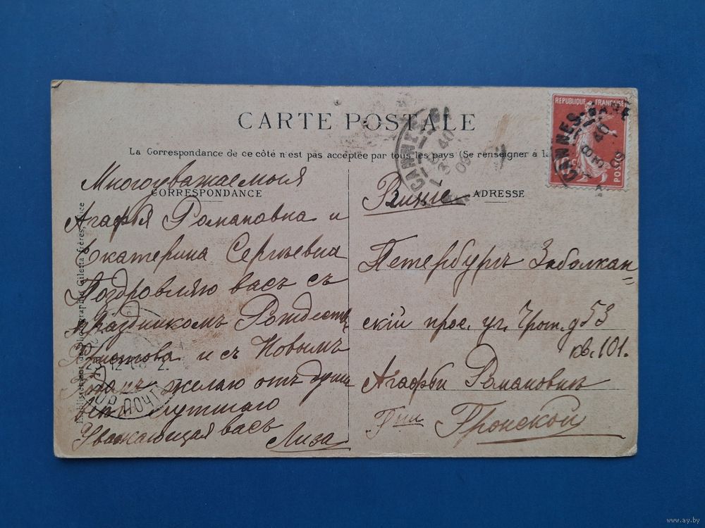 ОТПРАВЛЕНА: КАННЫ (ФРАНЦИЯ) 03.09.1908