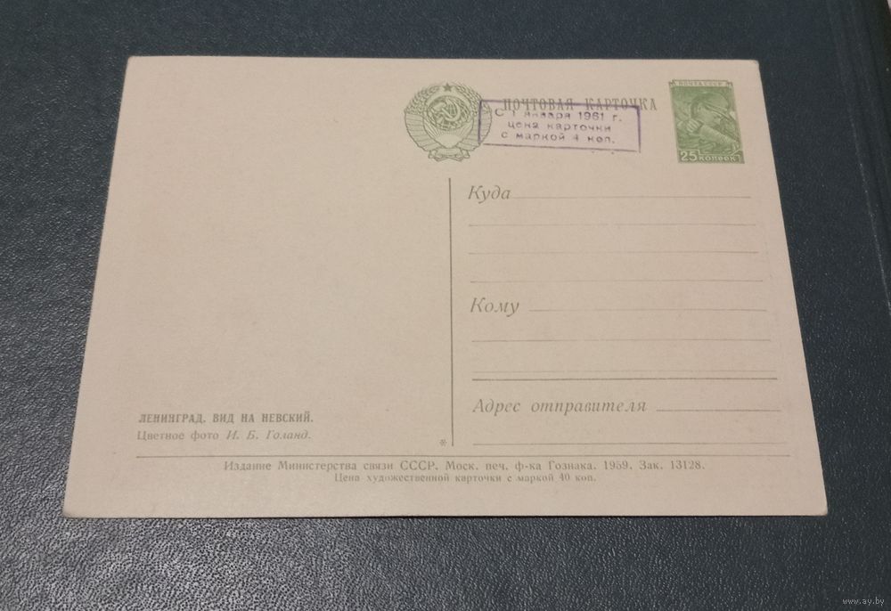 Почтовая карточка "Ленинград. Вид на Невский"1959г. фото И.Б.Голанд чистая