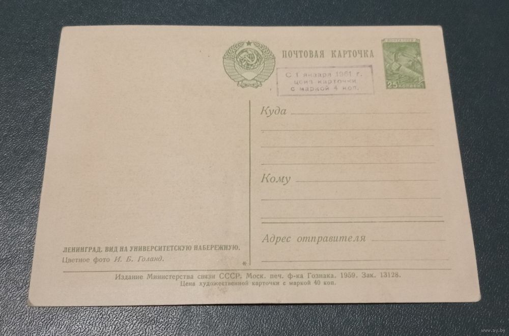 Почтовая карточка "Ленинград.Вид на университетскую набережную" 1959г. фото И.Б.Голанд чистая