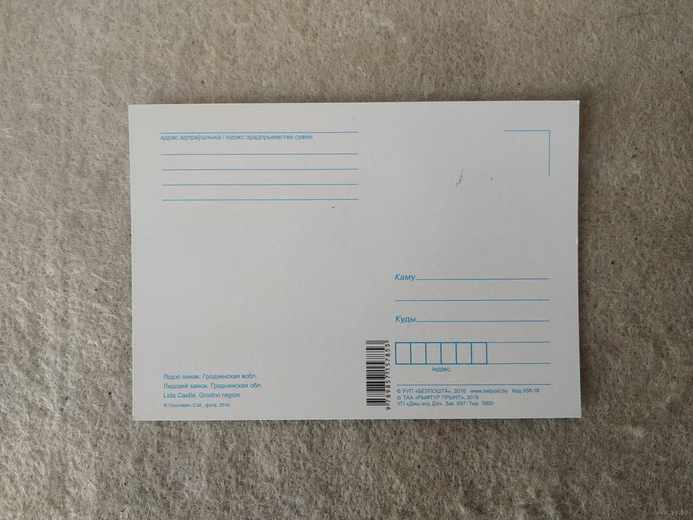 Почтовая карточка/открытка. Беларусь, г. Лида, Лидский замок, 2016 год.