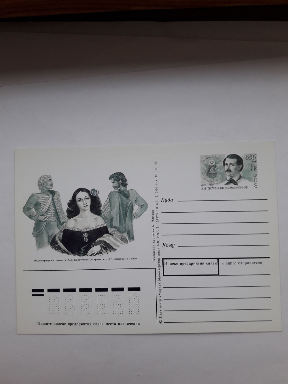 Почтовая карточка РФ 1997 Бестужев- Марлинский писатель декабрист