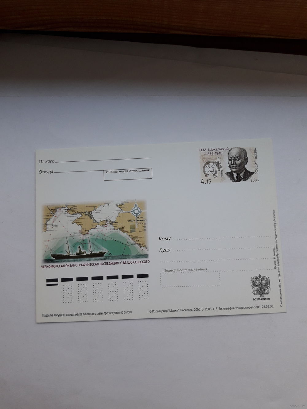 Почтовая карточка РФ 2006 Шокальскии иследователь