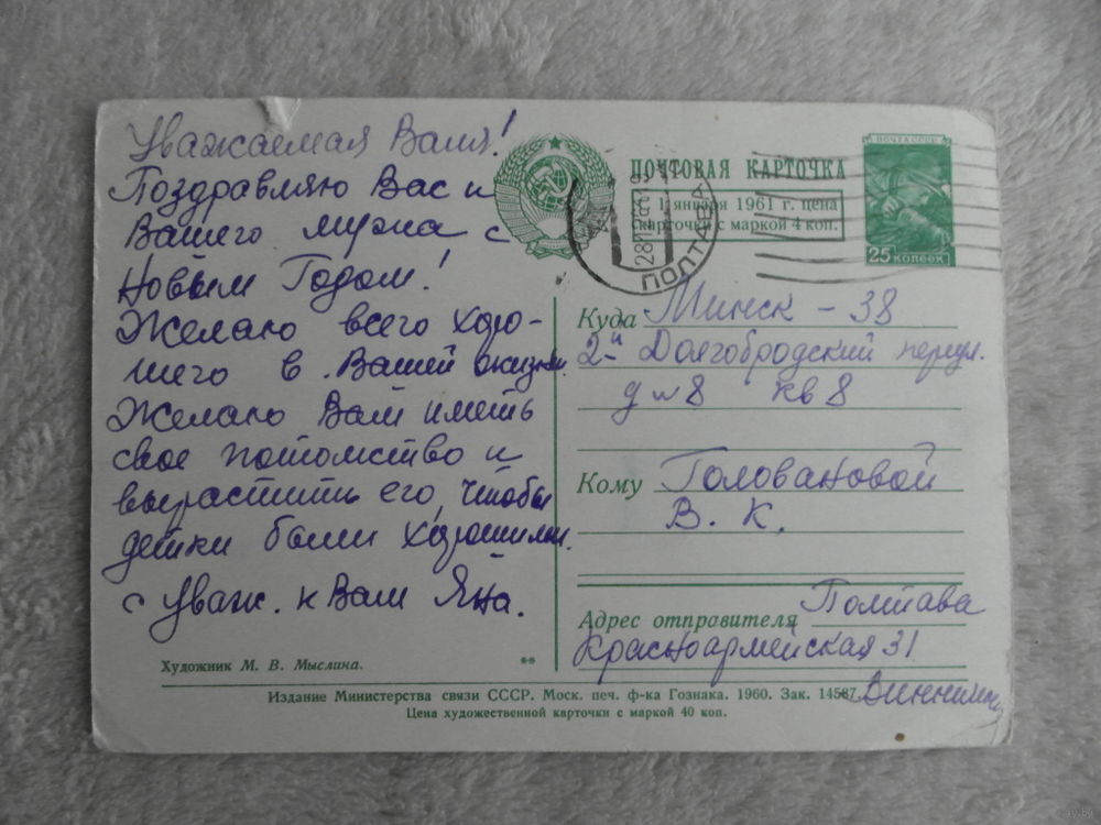 Почтовая карточка. С НОВЫМ ГОДОМ! Худ.М.В.Мыслина. 1960 г. СССР. Подписана.Состояние хорошее.