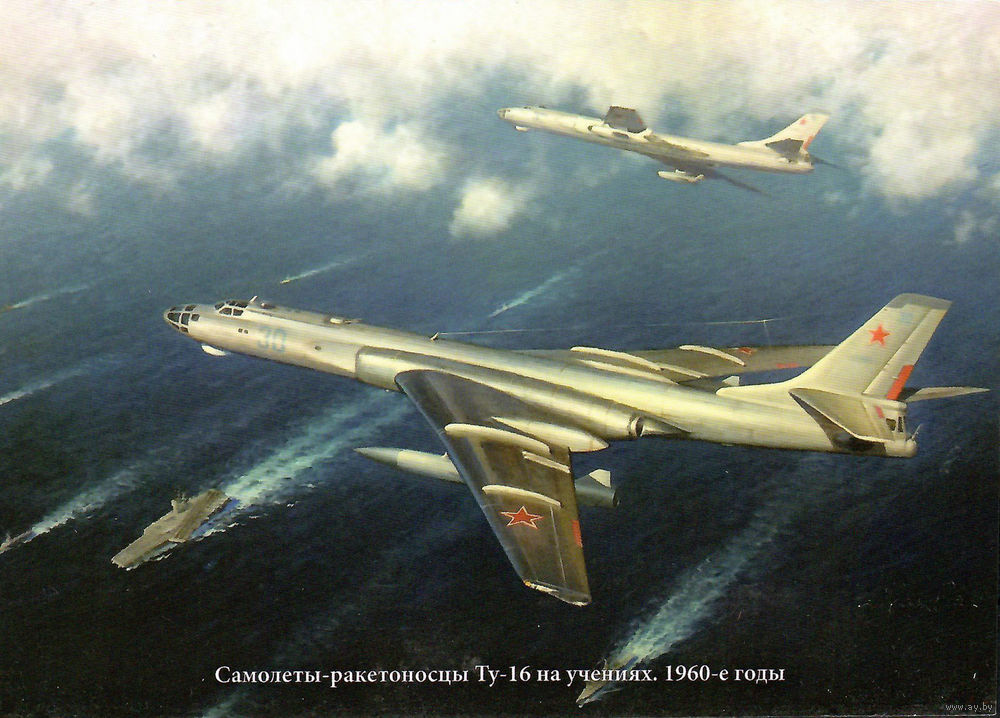 Почтовая карточка "Самолеты-ракетоносцы Ту-16 на учениях. 1960-е годы"