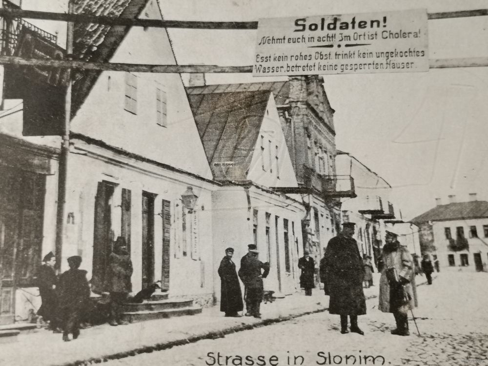 Надпись на плакате -Солдаты!!! Будьте осторожны! В городе холера! Не пейте сырую воду! Не заходите в запертые дома!.