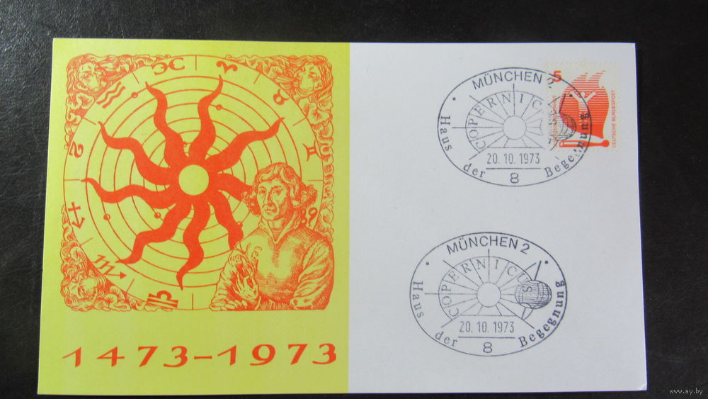 Почтовая карточка со спецгашением 1973г. Германия, Коперник