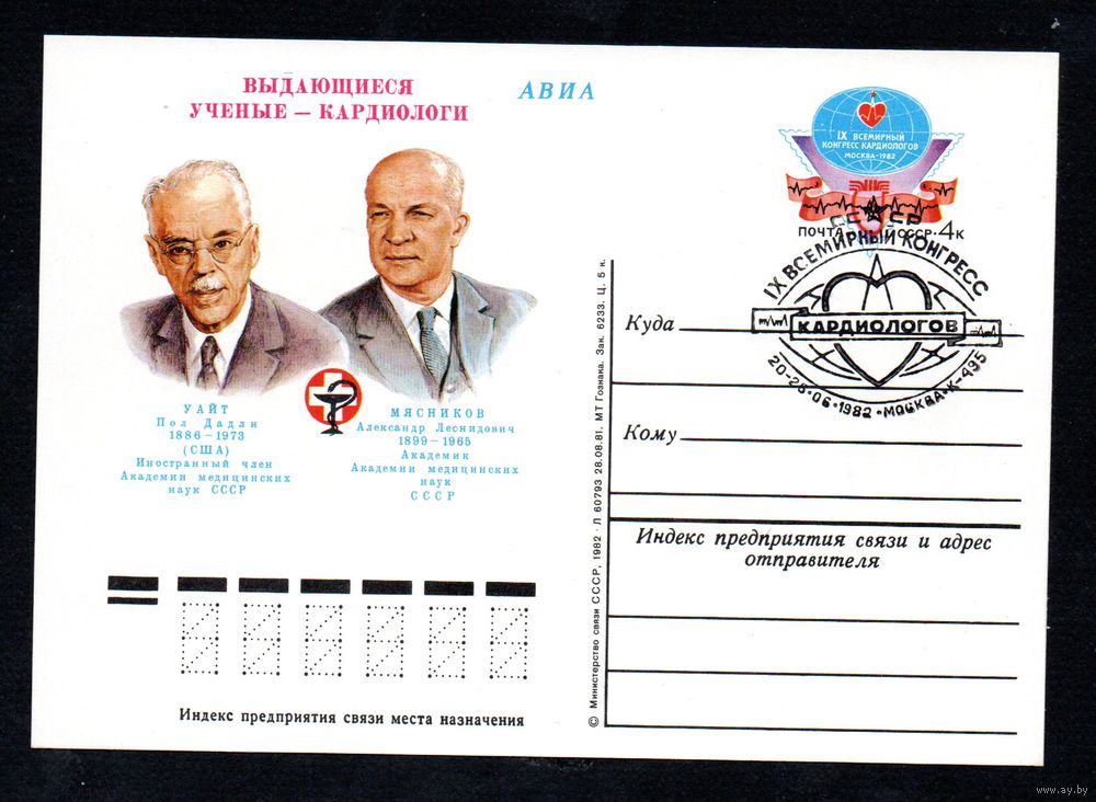 Почтовая карточка СССР с оригинальной маркой и спецгашением (к-495) N 101 (04.03.1982) "IX Всемирный конгресс кардиологов"