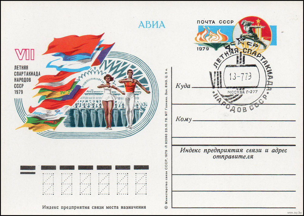 Почтовая карточка СССР с оригинальной маркой N 73 и спецгашением (28.03.1979) VII летняя спартакиада народов СССР