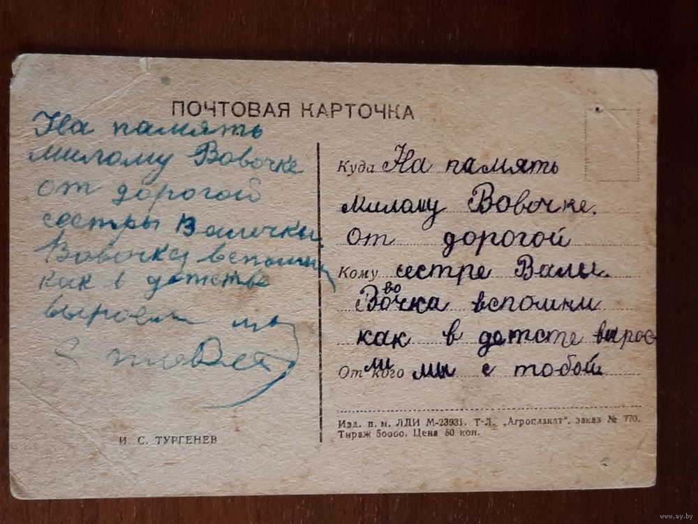 Почтовая карточка. Тургенев. Агроплакат