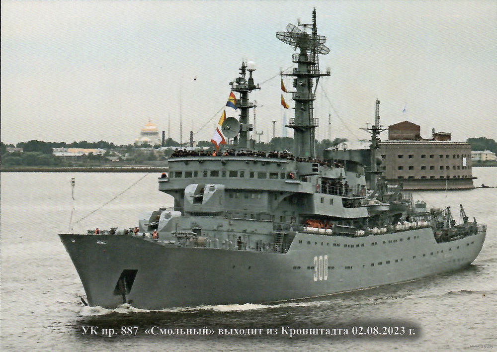 Почтовая карточка "Ук. пр. 887. "Смольный" выходит из Кронштадта. 02.08.2023 г."