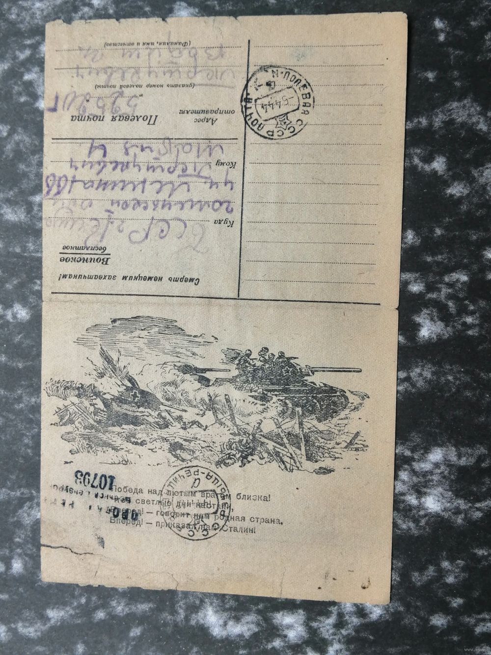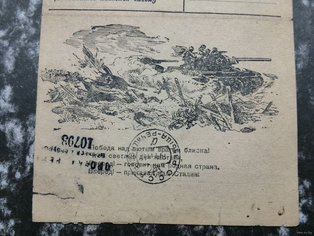 Почтовая карточка.Воинское 1944 Речица полевая почта .