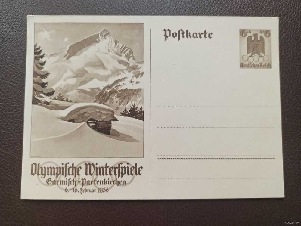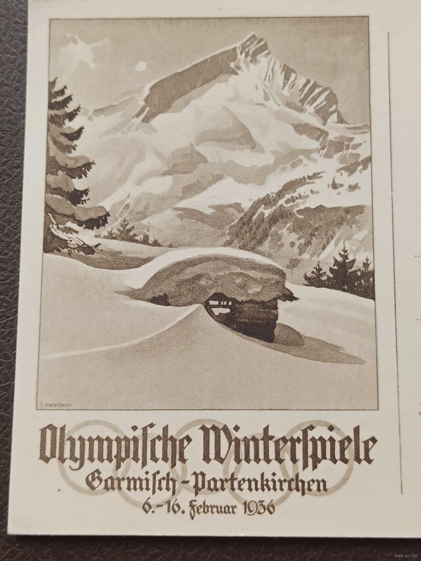 Почтовая карточка, зимняя Олимпиада в Гармеш-Партенкирхене 1936, февраль, Германия, Рейх.