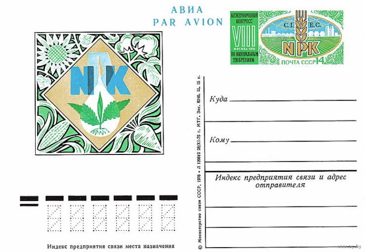 Почтовые карточки с оригинальной маркой.VIII международный конгресс по минеральным удобрениям. Москва