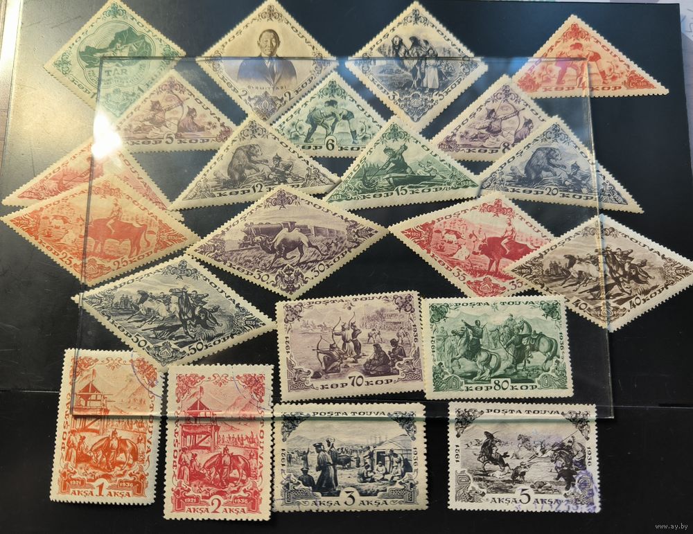 Почтовые марки Тувинской Народной Республики. 15 годовщина провозглашения Республики. 1а-5а - гашеные. 2а, 5а - без клея. Полная серия. № 73-94 (Загорский).
