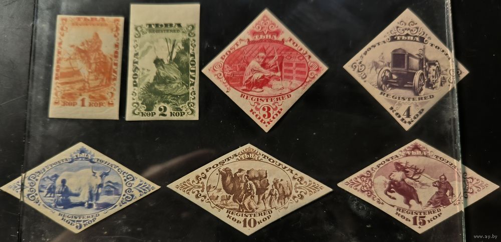 Почтовые марки Тувинской Народной Республики. Заказная почта. №№ 31-37 (Загорский). Без перфорации. В серии отсутствует одна марка (20к).