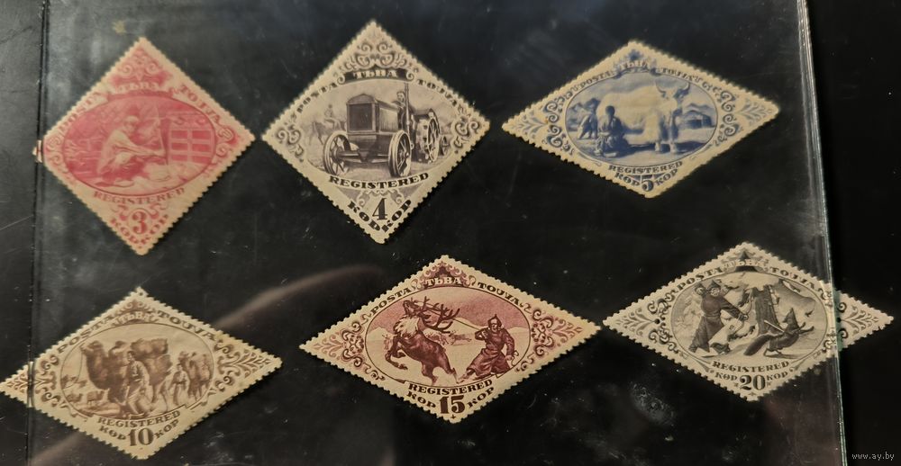 Почтовые марки Тувинской Народной Республики. Заказная почта. №№ 41-46 (Загорский). Лин 12,5. В серии отсутствует две марки (1 и 2к).