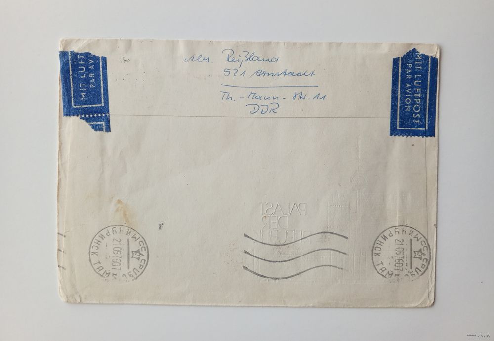 Одна или 2 почтовые марки на конверте отсутствуют.