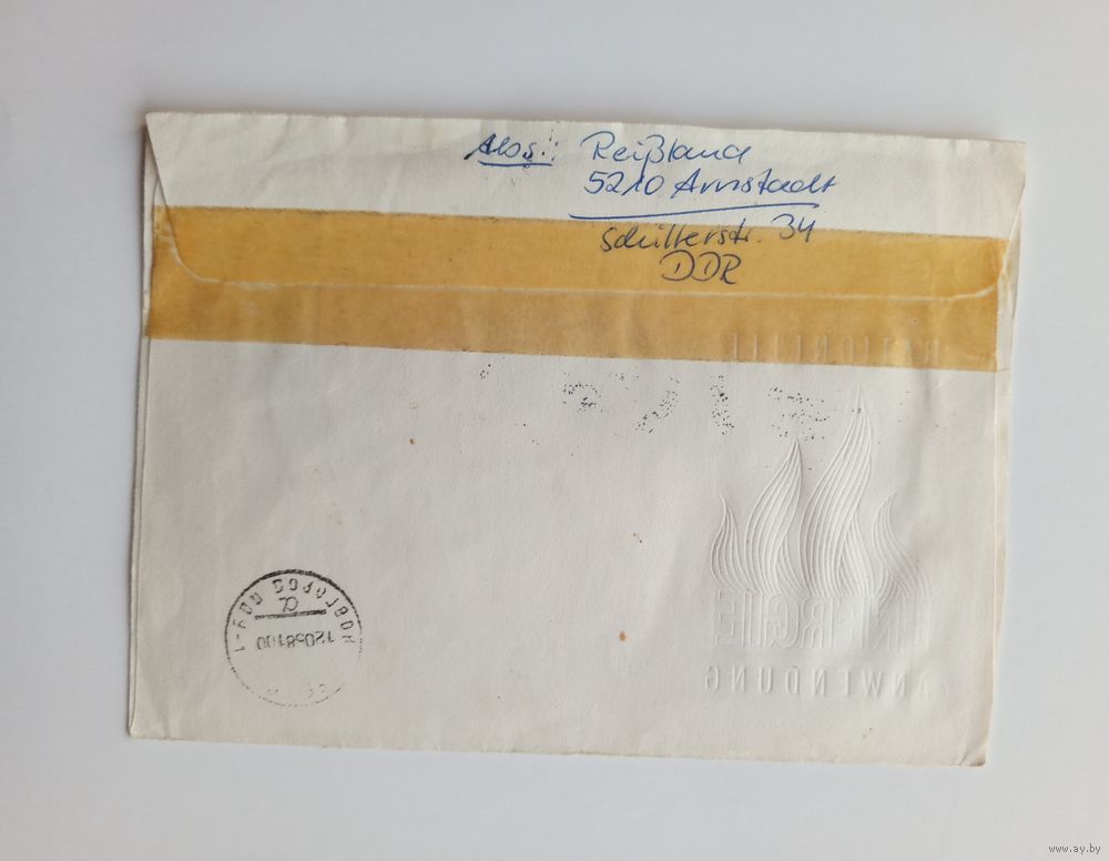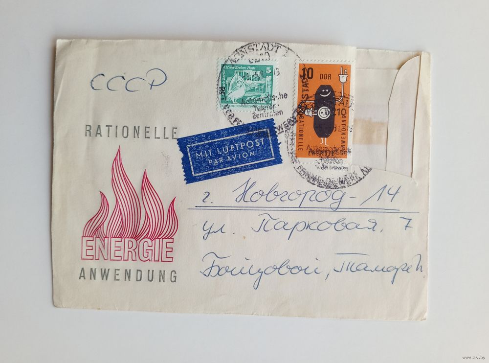 Почтовый конверт из ГДР, прошедший почту. 1981 год.