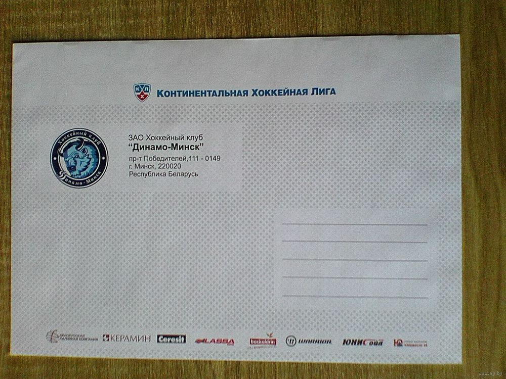 Почтовый Конверт - С Логотипами "КХЛ и ХК "Динамо" Минск" - Размеры: 23/32 см.