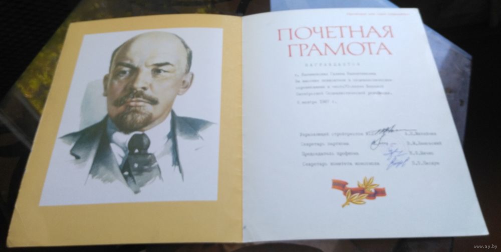 Почётная грамота Бобруйск Стройтрест 13 1987 год