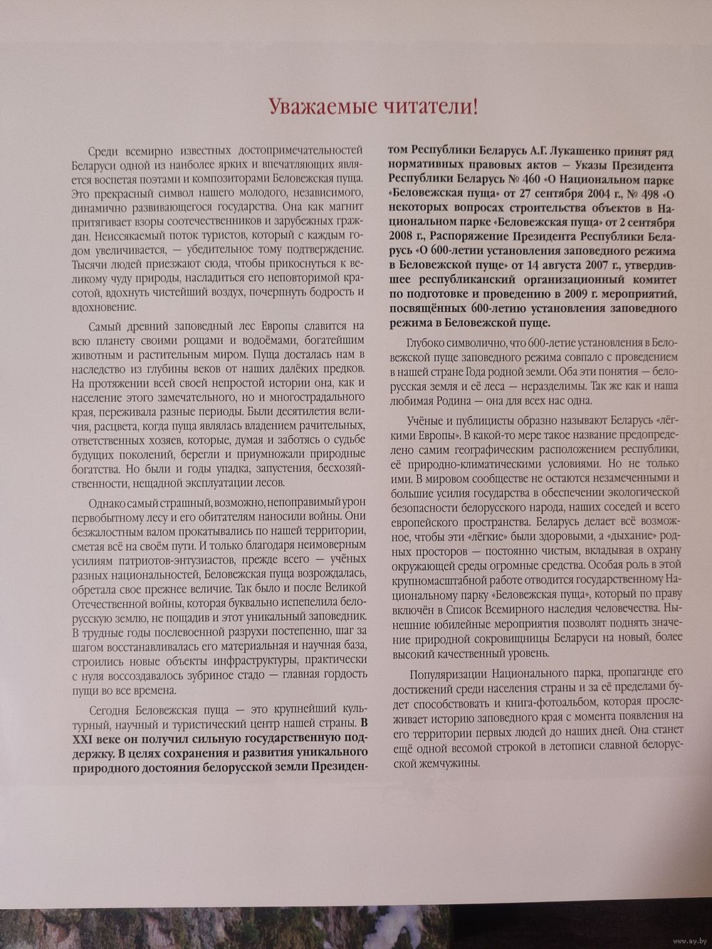 ПОДАРОЧНЫЙ ФОТОАЛЬБОМ "ЗЕМЛЯ СИЛЫ", ПОСВЯЩЕННЫЙ 600-ЛЕТИЮ БЕЛОВЕЖСКОЙ ПУЩИ В ПОДАРОЧНОМ ФУТЛЯРЕ. НА РУССКОМ И БЕЛОРУССКОМ ЯЗЫКАХ. 2009 ГОД. БУМАГА МЕЛОВАННАЯ. ЗОЛОТОЕ ТИСНЕНИЕ.