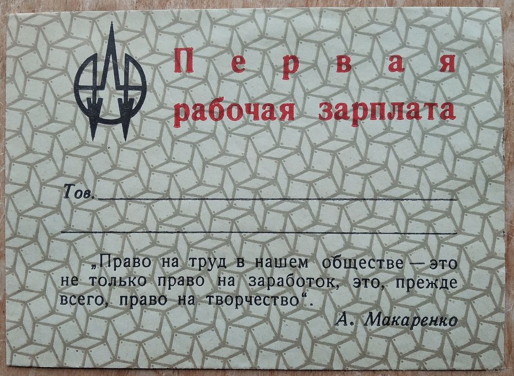 Подарочный конверт "Первая рабочая зарплата". Минск Интеграл.