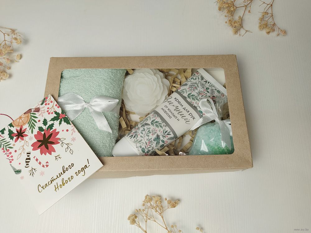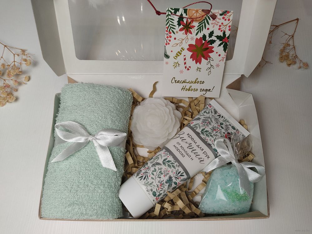 Подарочная коробка перевязывается атласной лентой в цвет набора.