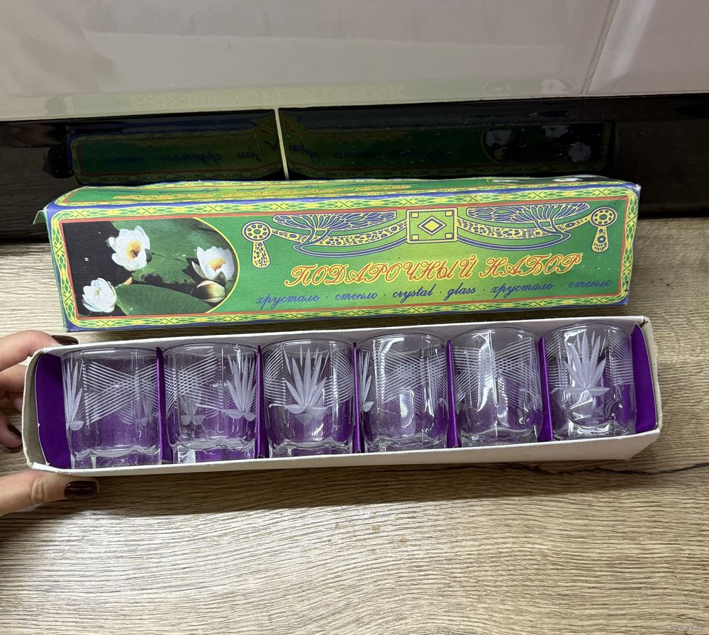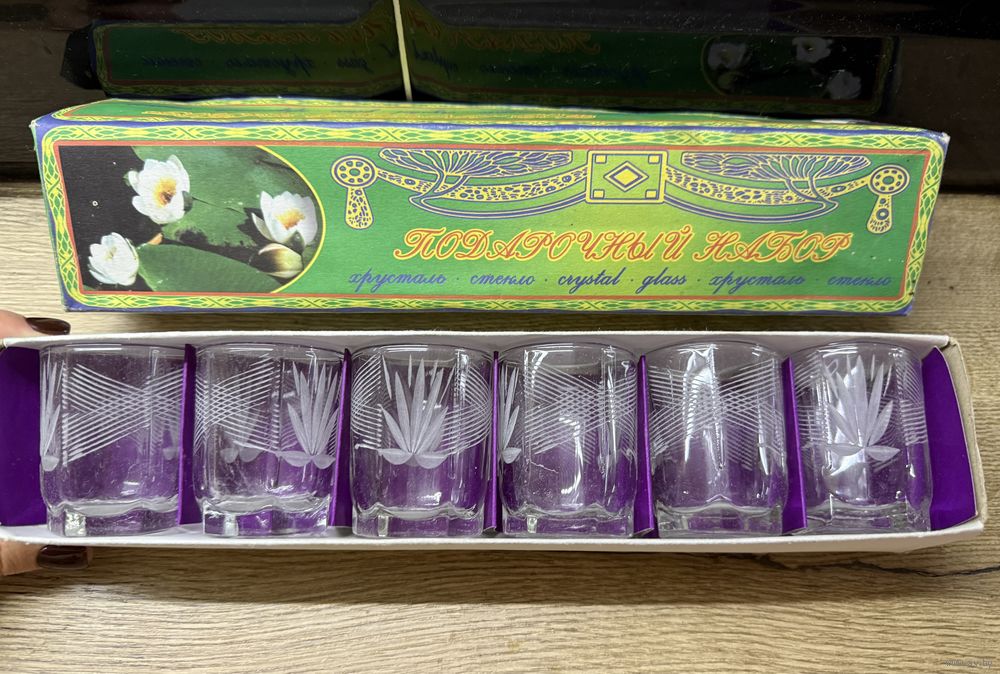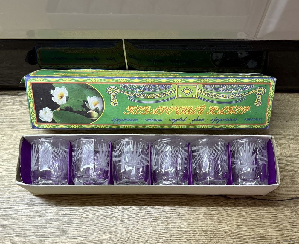 Подарочный набор рюмок хрустальных СССР,в коробке,резной рисунок