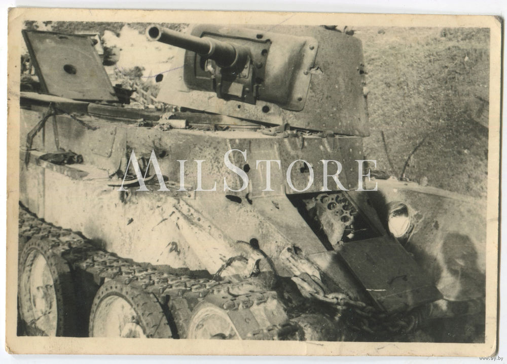 Подбитый из зенитного орудия БТ-7 между Минском и Смоленском, лето 1941.
