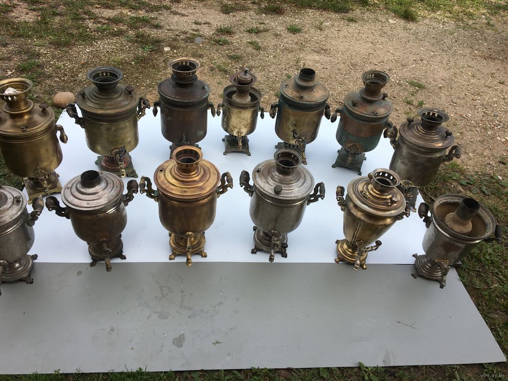 царизм слева-направо: А,И Баташевы, Баташев с английскими надписями-тяжёлый, 3-й-Ильин,без крышки средний- Салищев, М.Слюзберг,6-й Баташовы, последний П.В.Салищев. кое-где не хватает расходников. а также крышки на средний Салищева и думаю на достаточно редкий советский "Медник Пермьметсоюз" тоже среднего размера. советы представлены в основном ТКПЗ. Если у кого-то есть указанные крышки-готов купить! Ручки на всех самоварах целы как и краны!