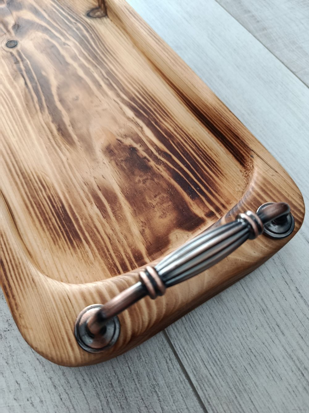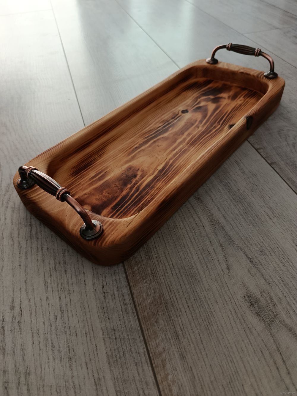 Поднос ручно работы из сосны. Размеры - 37,5 x 15,5 x 3,5. Обожжен и пропитан натуральным маслом на основе льняного.