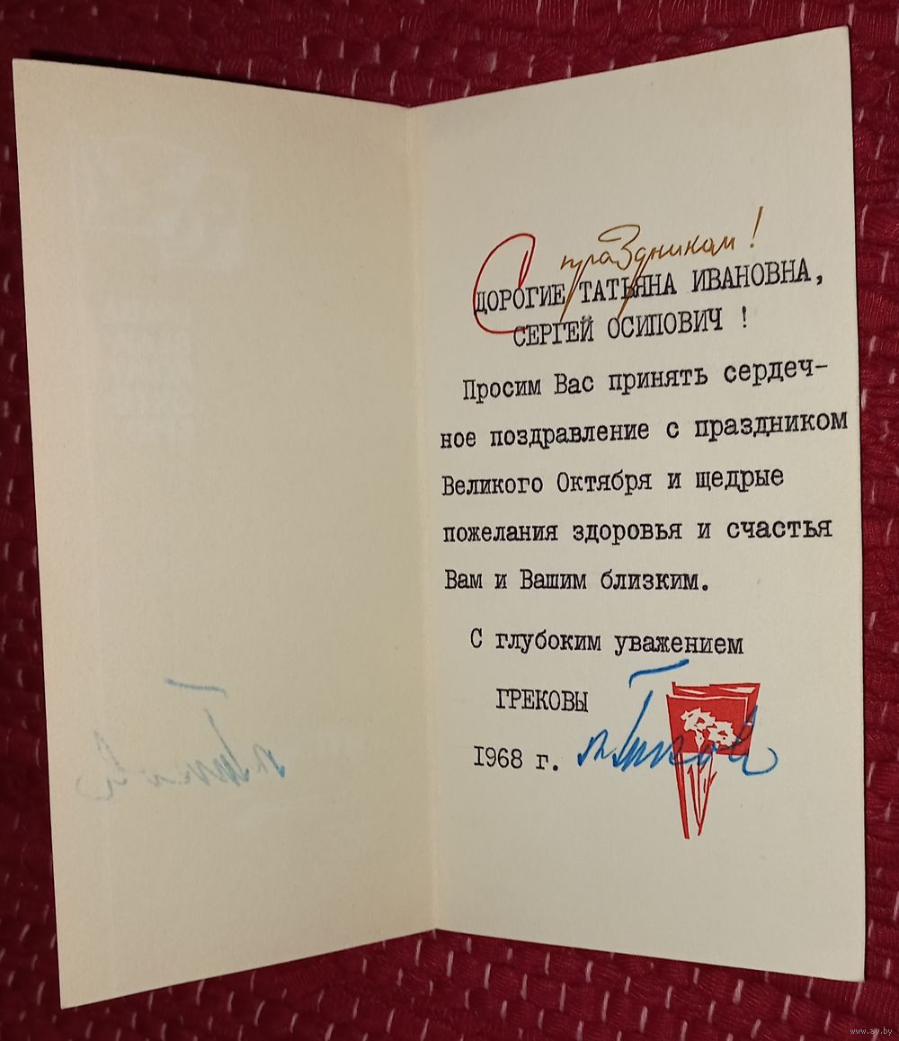 Подпись генполковн. В.А.Грекова на поздравлении Притыцкому. (А46)