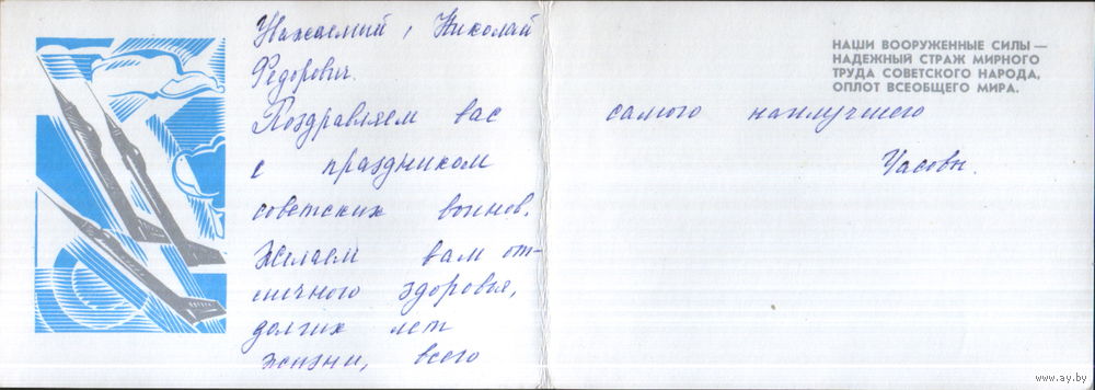 Подписанная двойная открытка 1978г. "23 Февраля. Слава защитникам советской Родины!" худ. А. Щедрин