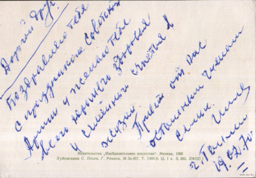 Подписанная миниоткрытка 1969г. "23 Февраля. Слава Советской Армии!" худ. С. Пегов и Д. Зуськов
