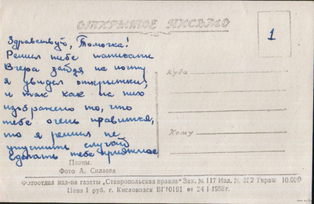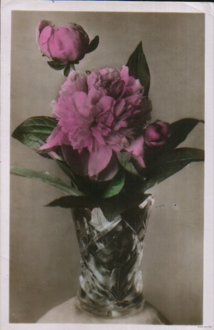 Подписанная открытка 1958г. "Пионы" фото А. Силаев