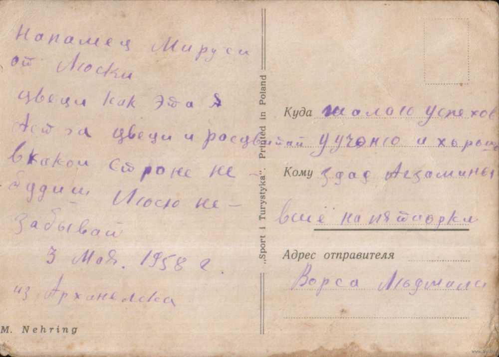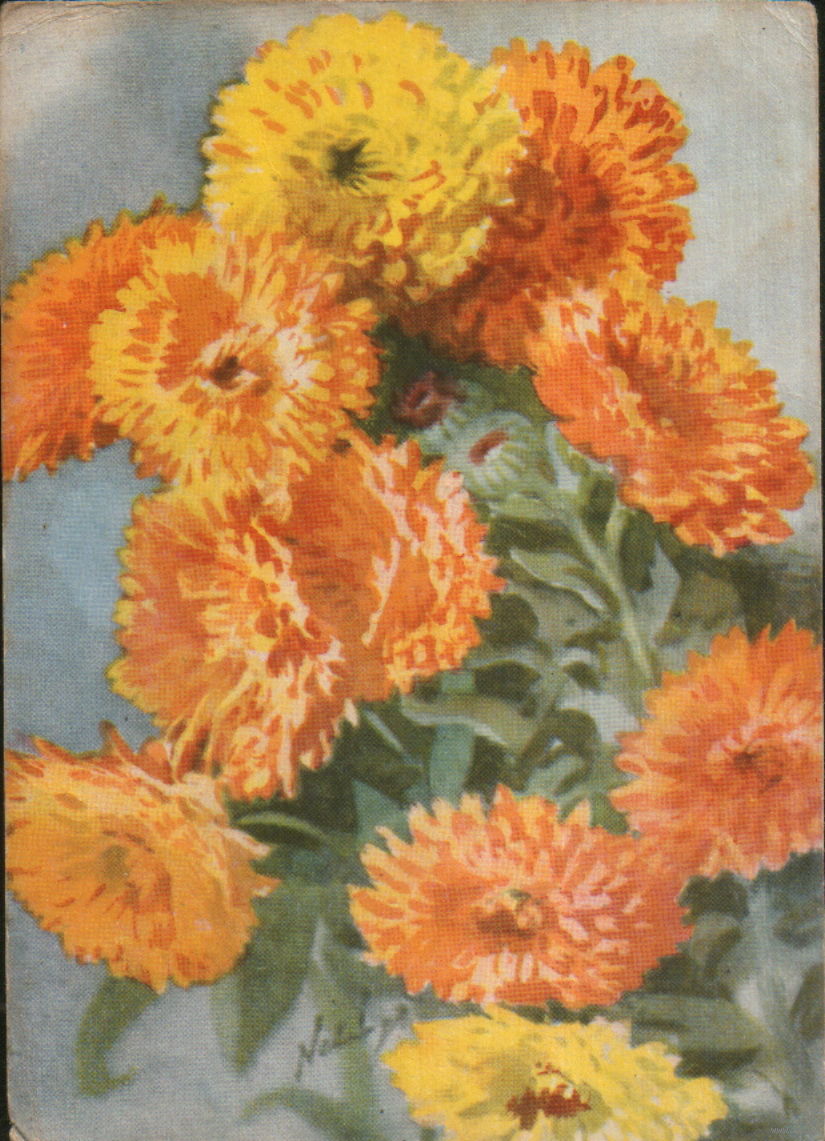 Подписанная открытка 1958г. Польша "Ноготки" худ. Матей Неринг