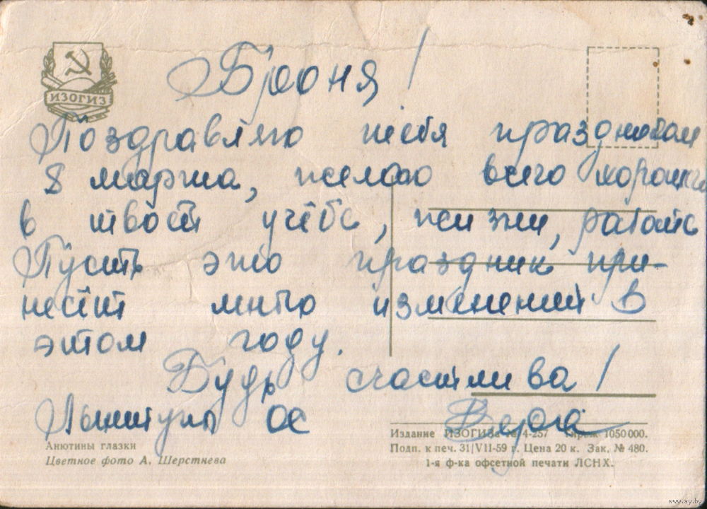Подписанная открытка 1959г. "Анютины глазки" фото А. Шерстнев