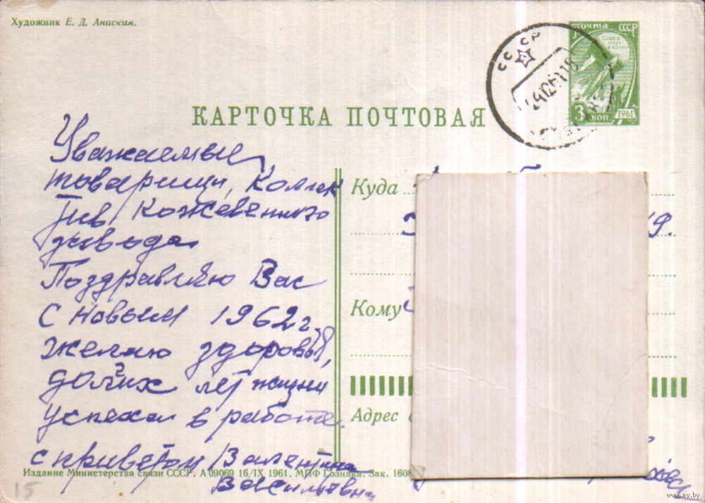 Подписанная открытка 1961г. "С Новым годом! Москва" худ. Е. Анискин